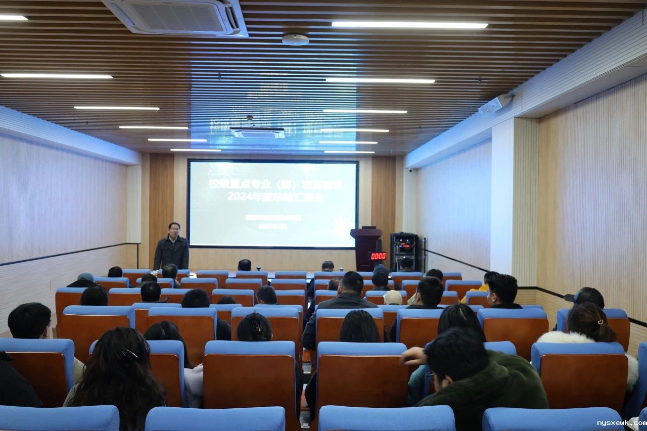 为全面回顾盘点2024年校级重点专业(群)项目建设成果,总结工作经验,安排部署2025年项目建设工作,1月7日下午,我校在立德楼二楼报告厅开展校级重点专业(群)项目建设2024年度总结汇报会,5个二级学院共6个校级重点专业(群)参与汇报。常务副校长季虹,副校长黄友富、乔继刚、闫志港出席会议。