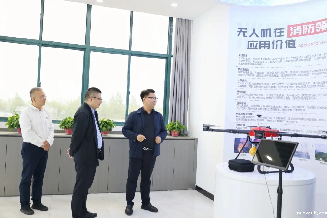 座谈会前,朱国军一行实地参观了学校国防教育馆、党员之家以及无人机实训中心等场所。